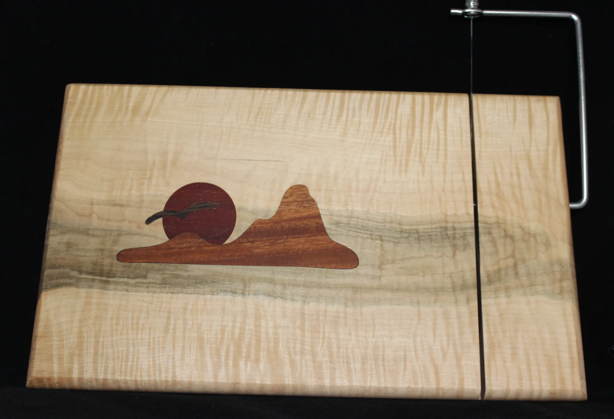 Charcuterie Board, Maple with cheese slicer and inlaid sunset over mountain